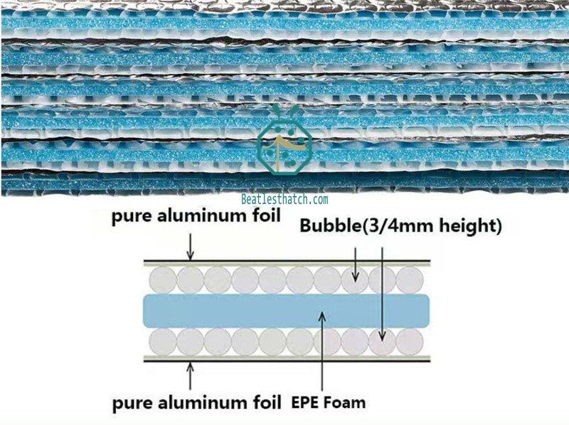 Sebbene la paglia sintetica conferisca un'atmosfera tipica delle isole, spesso è priva di proprietà isolanti intrinseche. Installando il nostro foglio di alluminio a bolle d'aria direttamente sotto le tegole di paglia, si crea una barriera radiante che mantiene le ville per gli ospiti significativamente più fresche.